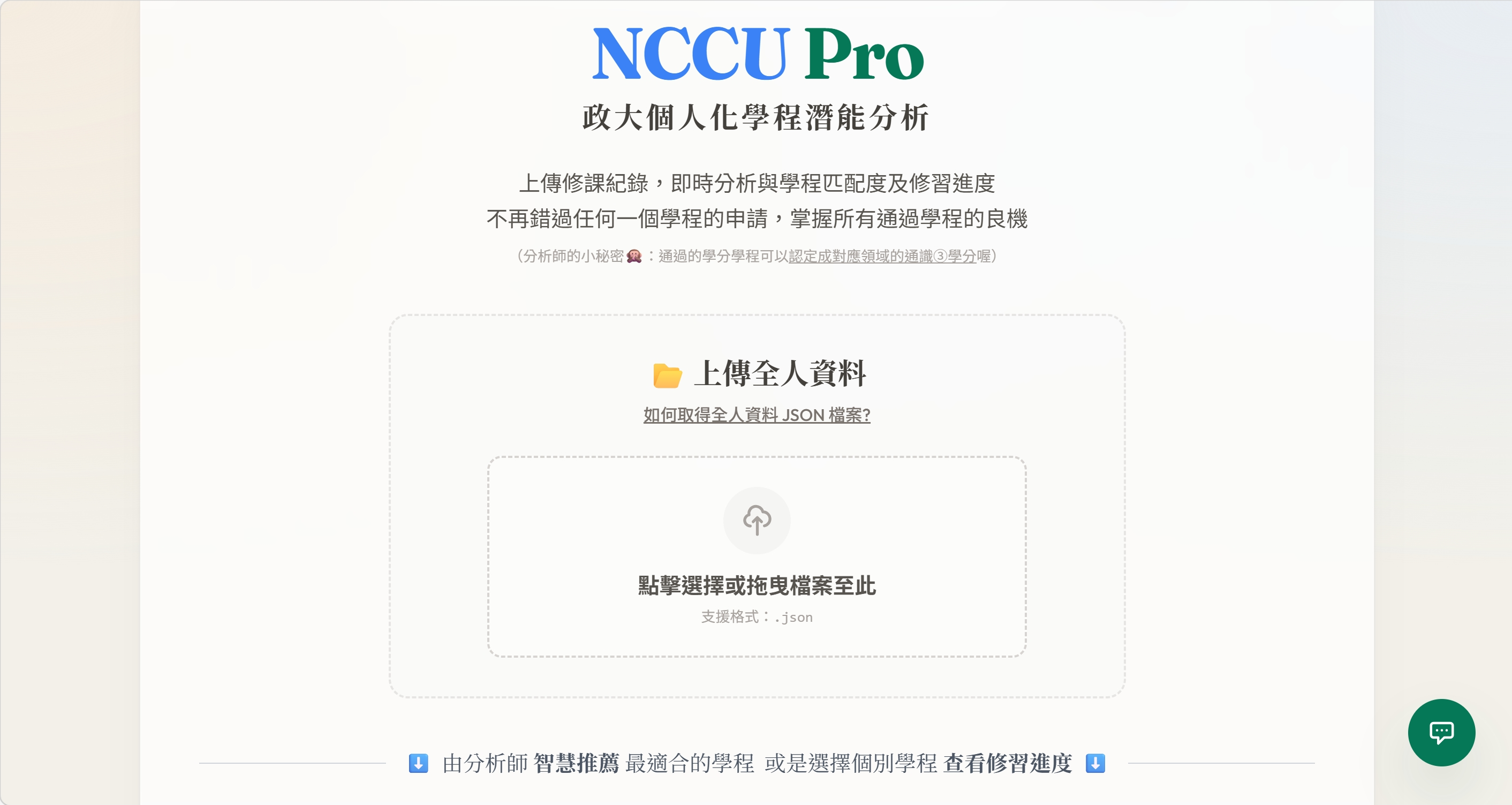 這是一個開源工具,旨在解決政大學生無法快速得知修課歷程與學程要求的差距,以及無法有效找到與興趣專長相符的學程之問題。透過上傳從校務全人系統匯出的「課業學習」JSON